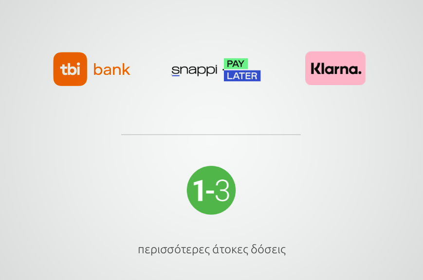 Η Klarna σου δίνει τη δυνατότητα να πληρώσεις σε 3 άτοκες δόσεις, με έναν γρήγορο και ασφαλή τρόπο, ενώ η TBI Bank προσφέρει 4 άτοκες δόσεις για αγορές έως 1.000€, ιδανική για μεγαλύτερης αξίας προϊόντα. Παράλληλα, η Snappi σου δίνει 4 άτοκες δόσεις για ποσά από 60€ έως 750€, προσφέροντας ακόμη μεγαλύτερη ευελιξία για τις αγορές σου.