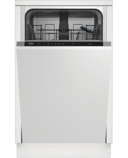 Beko DIS35026. Τοποθέτηση συσκευής: Πλήρως ενσωματωμένο, Μέγεθος προϊόντος: Λεπτό (45 cm), Χρώμα πίνακα ελέγχου: Μαύρος (Μαύρο). Αριθμός ρυθμίσεων: 10 σερβίτσια, Κλάση εκπομπών θορύβου: C, Επίπεδο θορύβου: 48 dB. Συμμόρφωση εξοικονόμησης ενέργειας: E, Κατανάλωση νερού ανά κύκλο: 11,9 L, Κατανάλωση ενέργειας ανά 100 κύκλους: 76 kWh. Πλάτος: 448 mm, Βάθος: 550 mm, Ύψος: 818 mm